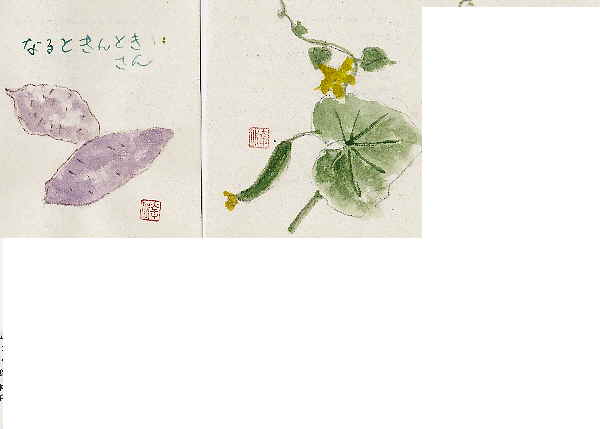 雷のお母さんがゴロゴロ、ゴロゴロ 大豆をひいて黄な粉を作っています ぺんぎんのぺんちゃんが 注)冷蔵庫の番人の人形のペンちゃん ぺ「なにつくりはるの?」 雷「お盆におはぎを作って仏さまにお供えするのよ」 ぺ「ああそう、安心したわ、きょうは腹巻するの忘れてたの」 雨はキュウリの葉っぱを濡らしただけで ぺんちゃんがうたたねからめがさめるとてどこかへいってしまいました ぺ「涼しくて、快適やわあ」ぺんちゃんはごきげんです 今日は朝から蝉さんもどこかへいってしまって せっせせっせの声が聞こえません 山のふもとの涼しい木陰に集まって 「のど自慢大会」をしているのでしょう人気ブログランキングへクリックお願いします「さっちゃんのお気楽ブログ」のポストカードをご希望の方は 下記「手づくりの店 本郷」さんにお問い合わせください。 ---------------------------------------------------手づくりの店 本郷 〒776-0010徳島県吉野川市鴨島町鴨島233-1Blog : http://ameblo.jp/hongo-blog/TEL : 0883-24-3711E-mail : secchan@brown.plala.or.jp----------------------------------------------------