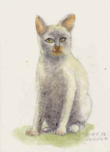[ 「あなたはだーれ?」 クーラーをつけっぱなしの部屋で なんやかや運んできて昼食を食べようとすると たれかが私を見ている気配を感じた 「ああ、あんたはん お名前は?」 電柱の上の方にくくりつけられている 海の中にもぐるとき背中に背負っている空気のボンベ 見たいなもの2個 ほかに白い碍子5,6個 たばねてぶらさがっている 私が食べている巻きずしが欲しいのかなあ 「ああ、あんたおなかがすいているんだね」 でもそんな高いところ 届かないよ あとひと月の辛抱だよ がまん がまん 「あーあ、はらぺこであとひとつき だって?」 電信柱もたいへんだなー おしらせ 「すてきに・ハンドメイド」に掲載の記念にさっちゃんのブログの 絵でお気に入りがあれば本郷さんに連絡していただければ 額装してお送りいたします 代金は1点8千円です人気ブログランキングへクリックお願いします「さっちゃんのお気楽ブログ」のポストカードをご希望の方は 下記「手づくりの店 本郷」さんにお問い合わせください。 ---------------------------------------------------手づくりの店 本郷 〒776-0010徳島県吉野川市鴨島町鴨島233-1Blog : http://ameblo.jp/hongo-blog/TEL : 0883-24-3711E-mail : secchan@brown.plala.or.jp----------------------------------------------------ご訪問ありがとうございます。 「また、あした。」にサインをしています 手づくりの店本郷までお願いいたします