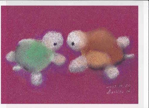 とくばあさんと子だぬき ピンポーン とく「あーらだれかしら」 さっちゃん「こんにちわ。 うわー なに これ?」 とく「世話が焼けるおともだちよ」 さっちゃんはびっくり。 子狸たちはワイワイ騒いでいました。 とく「あのね、これから女の子たちになまえをつけるとこなの」 さち「へーえ、なまえねえ」 とくばあさんは広い部屋の真ん中にメロンとバナナと さっちゃんが持ってきたりんごとみかんをべつべつに 四個の椅子の上に置きました。 とく「さあみんな この椅子の周りを輪になって お歌を歌いながら回るのよ。 さっちゃんがきたから さっちゃんの歌だよ。はい、ワンツースリー はい」 とく「さあ、みんなまわってまわって。」 子だぬきのおんなのこ達はげんきにうたいます とく「ハーイストップ。自分の前にある果物の なまえをいってください」 子だぬきたちは口々に果物の名前を言いました とく「さあ、これで決まりだよ」 子だぬきたち「うわー、うれしいな」 「ばななちゃん」「わたし めろんよ」「わたしはりんごよ」 「あんたはみかんだね」 男の子のワンツースリーフォウくんをよんできて みんなで果物をおいしくいただきました。人気ブログランキングへクリックお願いします「さっちゃんのお気楽ブログ」のポストカードをご希望の方は 下記「手づくりの店 本郷」さんにお問い合わせください。 ---------------------------------------------------手づくりの店 本郷 〒776-0010徳島県吉野川市鴨島町鴨島233-1Blog : http://ameblo.jp/hongo-blog/TEL : 0883-24-3711E-mail : secchan@brown.plala.or.jp----------------------------------------------------ご訪問ありがとうございます。 「また、あした。」にサインをしています 手づくりの店本郷までお願いいたします