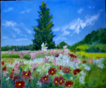 油彩画 コスモスの広場 F10号 (未完) きょう先生のアトリエで描いていた作品です 収録 4日目 朝から先生のアトリエで油彩画を描くところを撮りました 12時に終わり昼食です 取材のみなさんお元気で朝からニンニク風呂からこられたようだ 午後からさいごのインタビューです 椅子に座るとうわさの女優ライトがともる 「うわー まぶしいー」 マイクくんがブルーと黒の布らしきもので覆いました カメラ君がポケットから長い櫛を取り出して 髪をときつけてくれました やさしいおにいちゃんたち ありがとうね そしておしゃべり音痴のさっちゃんは 4日間 やさしいデイレクターさんを困らせてばかりでした人気ブログランキングへクリックお願いします「さっちゃんのお気楽ブログ」のポストカードをご希望の方は 下記「手づくりの店 本郷」さんにお問い合わせください。 ---------------------------------------------------手づくりの店 本郷 〒776-0010徳島県吉野川市鴨島町鴨島233-1Blog : http://ameblo.jp/hongo-blog/TEL : 0883-24-3711E-mail : secchan@brown.plala.or.jp----------------------------------------------------ご訪問ありがとうございます。 「また、あした。」にサインを入れています 手づくりの店本郷までお願いいたします