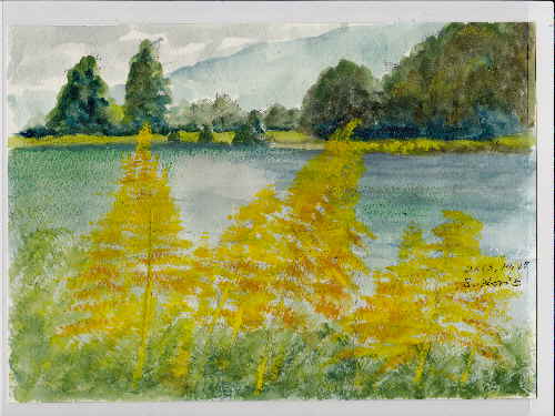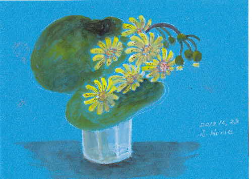 なつかしいせいたかあわだちそう 30年ばかり昔いたるところにみられた 黄色の鮮やかな花はなぜかきらわれものだった アメリカからなにかにくっついてきて 繁殖力が強くてまたたくまに日本中に広がった 空き地という空き地は占領されて その逞しさに危惧を抱いた 今このあたりの田舎では見られない この絵は都会の公園で育てられているらしいものである 生け花にすると美しく豪華である しかし、何となく、異国育ちの逞しい性質は われわれ日本人の感性にそぐわないようだ でも、この逞しさはいいねえ!人気ブログランキングへクリックお願いします「さっちゃんのお気楽ブログ」のポストカードをご希望の方は 下記「手づくりの店 本郷」さんにお問い合わせください。 ---------------------------------------------------手づくりの店 本郷 〒776-0010徳島県吉野川市鴨島町鴨島233-1Blog : http://ameblo.jp/hongo-blog/TEL : 0883-24-3711E-mail : secchan@brown.plala.or.jp----------------------------------------------------ご訪問ありがとうございます。 「また、あした。」にサインをしています 手づくりの店本郷までお願いいたします