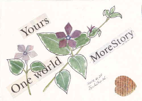 この間の芋虫君がでてきて 芋「こんばんわ」 さっちゃん「あんたどこへいっていたの。心配したよ。何食べていたの」 芋「きょうはNHKさんが来る日だろ。さっちゃんのこと心配だから みにきたのさ」 さ「そう、ご親切さま、でもねテレビに映してもらおうなんて思ってもだめだよ。 あんたなんかちっこいから映らないよ」 芋「さっちゃんはわすれっぽいんだから、NHKさんに尋ねられて 返事が出て来なかったらこまるでしょう。」 さ「あんたが教えてくれるっていうの。そんなの無理だよ」 芋「でも、しんぱいだなあ」 さ「大丈夫だよ。この瓶の中でおとなしくベゴニアの葉っぱにくるまって みていなさい。ニョッコリ、ニョッコリ出てきたらだめよ。」人気ブログランキングへクリックお願いします「さっちゃんのお気楽ブログ」のポストカードをご希望の方は 下記「手づくりの店 本郷」さんにお問い合わせください。 ---------------------------------------------------手づくりの店 本郷 〒776-0010徳島県吉野川市鴨島町鴨島233-1Blog : http://ameblo.jp/hongo-blog/TEL : 0883-24-3711E-mail : secchan@brown.plala.or.jp----------------------------------------------------ご訪問ありがとうございます。 「また、あした。」にサインを入れています 手づくりの店本郷までお願いいたします