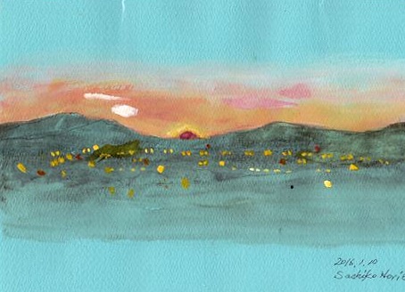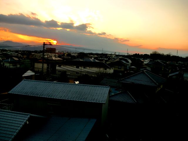 今日の初雪は朝食と共に来ました。「見てごらん、雪が降ってるよ」ベランダのガラス越しに粉雪が煙のようにビオラの花の上をとんでいます。早くも黒い屋根にうっすらと積んできました「粉雪だからつもるかもね」時々太陽が出てきたり薄い雲が覆って粉雪を散らしたり忙しそうな1日でした。太陽さんは朝から心配していたけれど雪も積もるほど降らないし夕方になってホッと一安心という表情をみせています山際に黒い雲がかかって今夜は夕焼けもお休み太陽は静かに沈んで行きました。人気ブログランキングへクリックお願いします「さっちゃんの油彩画廊」の作品、さっちゃんサイン入りの「青蛙のペキ」「また、あした。」、「さっちゃんのお気楽ブログ」のポストカード等をご希望の方は 下記「手づくりの店 本郷」さんにお問い合わせください。 ---------------------------------------------------手づくりの店 本郷 〒776-0010徳島県吉野川市鴨島町鴨島233-1Blog : http://ameblo.jp/hongo-blog/TEL : 0883-24-3711E-mail : tedukuri-hongo@mb.pikara.ne.jp----------------------------------------------------ご訪問ありがとうございます。