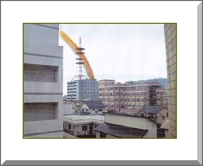 久しぶりに虹を見ました。朝から今日のお天気さんは移り気でした。曇りから晴れ間をチョイと見せたりパラパラ降らせてみたり、空いっぱいにムラムラの雲を広げて見たり洗濯をしている人は広げたり、とりこんだりと忙しかったでしょう。そんなとき、4時ごろ「虹が出てるよ」Kさんが部屋に飛び込んできたのであわてて廊下に出るや走ったよ。消えないように祈りつつ彼女のあとを追っかける。4階の広間のカーテンをかき分けて、見つけた。なんと最近の虹は狭苦しいビルの谷間に窮屈そうに片足で立っていた。片方の肢は北の空の黒い雲の中でまだ少し降っている様子だった。 人気ブログランキングへクリックお願いします「さっちゃんの油彩画廊」の作品、さっちゃんサイン入りの「青蛙のペキ」「また、あした。」、「さっちゃんのお気楽ブログ」のポストカード等をご希望の方は 下記「手づくりの店 本郷」さんにお問い合わせください。 ---------------------------------------------------手づくりの店 本郷 〒776-0010徳島県吉野川市鴨島町鴨島233-1Blog : http://ameblo.jp/hongo-blog/TEL : 0883-24-3711E-mail : tedukuri-hongo@mb.pikara.ne.jp----------------------------------------------------ご訪問ありがとうございます。
