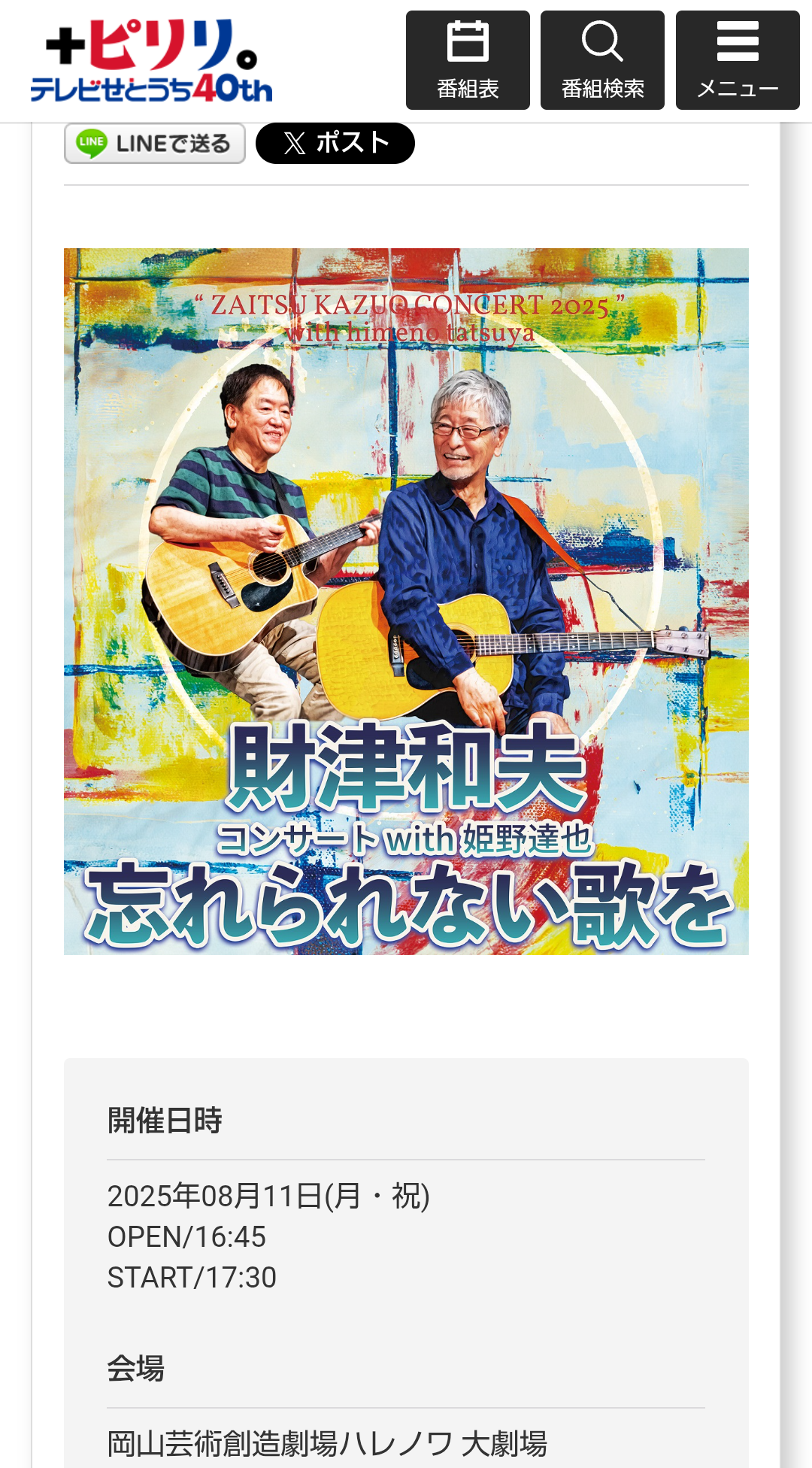 約28年振りの🌷系たぶん…もう最後財津さん&姫野さんのコンサートへお一人さまで行くんだけどここ数日の大雨…☔帰路が心配だけど、行っちゃえ!マリンライナー🚃止まらないでね〜🙏路面電車🚊混むかな〜2度目の「ハレノワ」チケット完売(…凄くない?)今日一般発売の地元アリーナでの9/20.21の小田和正さんのコンサートチケットは取れませんでした😢 やっぱり小田さんは凄いわ