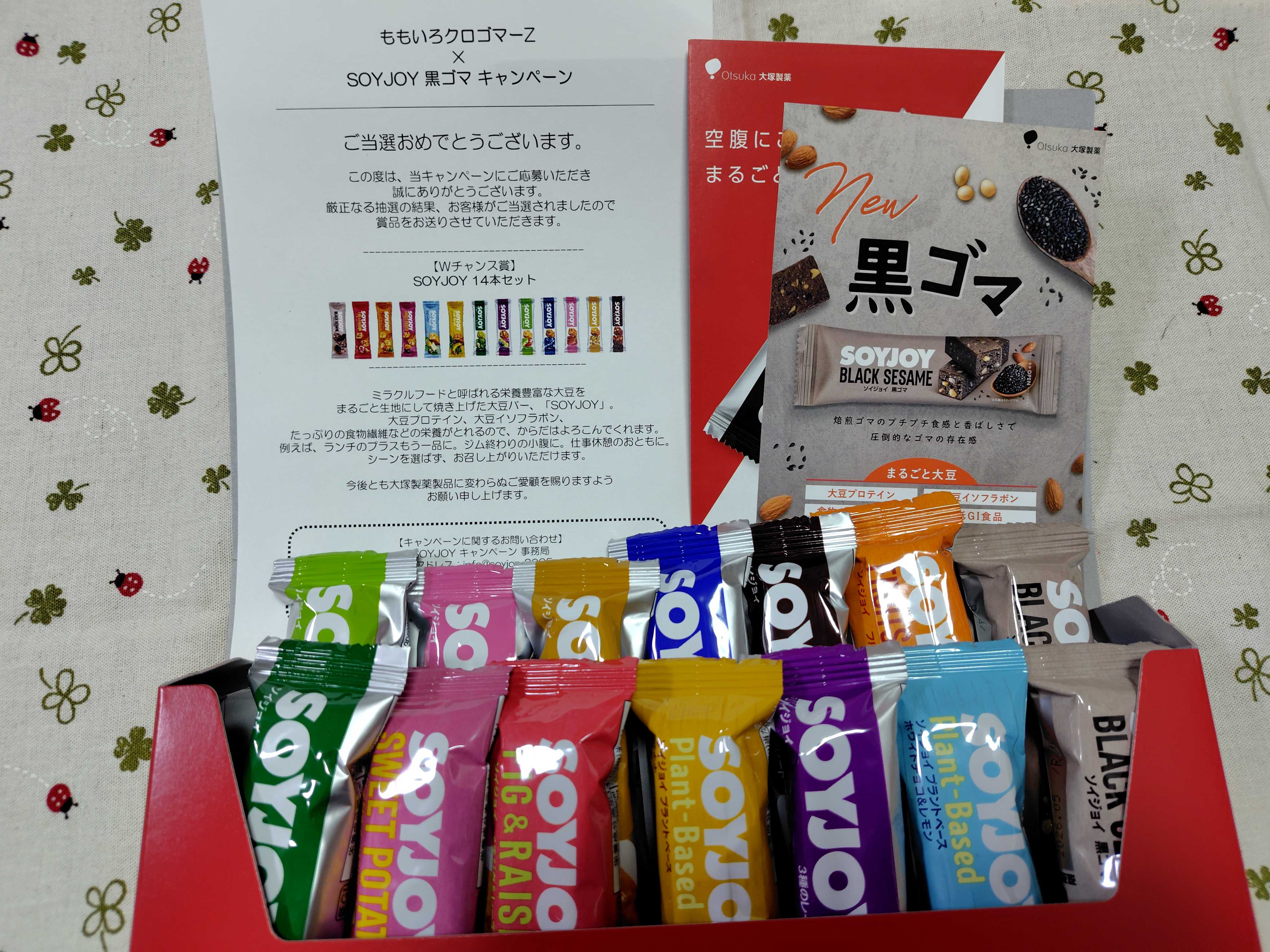 LINEレシート応募で当選通知(当確)の品が届きました🍀ももいろクロゴマーZ × SOY JOY黒ゴマ キャンペーン🎁Wチャンス賞 SOY JOY 14本セットお盆前の8/7に届きましたUPするのを失念していました😅💕大塚製薬さん、ありがとうございます💕