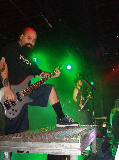 そーしてお次は本日メインのStatic-X!会場も一段と盛り上がり始めるっっ!踊りまくるのみじゃっっ!観客の声援と共に、メンバーがステージに上がって来たぁぁーーーっっ!ボーカルのウェインは相変わらず凄い髪型&お髭っっ!そーよっ!忘れてたけど、ギターは日本人なのよっっ!演奏が始まるとこれでもか位踊りまくり、ギターが日本人だちゅー事で、日本語で叫びまくりっっ!何度見ても、彼らのライブはカッコイイねんっっ!カッコイイしか言えないねんっっ!そーして、そして、3バンド目もさちねえはやっぱりモテモテなのかぁぁぁーーーーっっ!?ちゅーかモテモテと言うよりも…凄い事が起きちまったっっ! 彼らのステージセットは、ステージの両端、所謂さちねえ達が陣取ってる目の前に小型のお立ち台をセットしてたので、メンバーが代わる代わるにお立ち台に上りまくってたんだけど、勿論、ウェインもさちねえ側のお立ち台に上がった訳なんだけど、ウェインがお立ち台に上がった数回後、ウェインに思いっきり見つめられる。きゃぁーーーアタシを見たぁぁーーーっっ!って大勘違いじゃねーのっ!と、モテないヒガミな輩はお思いでしょーがっっ!【確実】にさちねえを見ていたのだっっ!そして目を離したくても離せない硬直状態のさちねえ姫が見た物はっっ!超スペシャル級の万遍の笑み。さちねえ、××歳、嫁…他の殿方との恋愛6年以上してません♪ウェインにハートを打ち砕かれる。マジ、本当、あんな形してヤバイ笑みだったんだってぇぇーーーっっ!ホレ、恋愛とかしてるとキュンちゅーのがあるんでしょっ!?そのキュンに電流がプラスされた状態ちゅーのっっ!?あの笑みじゃ落ちない女はいないぜよっっ!その後、何度かお立ち台にいらっしゃたウェイン氏ってば、これをさちねえに4回繰り返す。終いにはさちねえのハートはスポンジになっていたそーな。 と、その時っっ!ミナコが【さちねえさん!後ろ見てくださいっっ!】と絶叫すると、さちねえ達の後方にハデハデジャケットを着たお兄ちゃんをミナコが発見するっっ!【最初のバンド(Opiate For The Masses)のボーカルですよっ!】うっそーーーーーーーーー!さちねえは先程までのウェインの【万遍の笑み】をすっかり忘れ、あーーーーーーーーーーーー!とそのお兄ちゃんを指差すと、お兄ちゃんがさちねえ達の所までやって来たと思いきや、お兄ちゃんを中心に両脇にさちねえ、ミナコで思いっきり抱きしめられる。お兄ちゃんどーしたのぉっ!お兄ちゃんもStatic-X見たいのぉ!?ちゅーか北米ツアー一緒にやってるんだから、見る必要ないだろぉっ!そこでお兄ちゃんってば【君、超~~~ナイスだ。】そして極めつけが【We Love You!】【I Like You】じゃーなくって、うぃ~らぶゆぅ~~~!?メンバー全員がさちねえを愛しちゃったのかぁぁっっ!?さちねえやっぱりモテモテじゃぁーーーーんっっ!嗚呼、罪な女♪その後、お兄ちゃんに2匹は抱きかかえられたまま暫くお話をし、何時の間にかStatic-Xもアンコールを終え、最後になりっっ!ピック投げタイムになりましたがぁぁーーーっっ!ギターもベースもピックいらないねぇーーーーーん!さちねえはハートを打ち抜かれたウェインのピックのみが欲しいんじゃぁぁーーーっっ!が。彼はフロントの目の前に1枚だけピックを投げたのみ…やっぱり…さちねえは【万遍の笑み】を投げかけたと勝手に思い込んでたのか…きゃぁーーーアタシを見たぁぁーーーっっ!って大勘違いのそこら辺の娘と一緒なのか…しかーーーーしっっ!ウェインは思いっきりさちねえが【水くれぇーーーっっ!】と叫んだらっっ!またもや万遍の笑みの笑みでニコッと笑ってエビアンのボトルをさちねえに投げて来たのだぁぁっっ!ライブ中に投げた飲み干したビールの紙コップでもなくっ!エビアンのボトル!それも自分が飲んだヤツぅぅ~~~~~!よーは間接キッス♪ちゅーか間接キッスで喜ぶ何ぞレベル低だぞアホさちねえっっ!少しは夢見たいんじゃっ!悪いんかいっっ!(3)に続く。