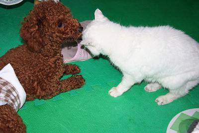 ウーちゃんとふぁんちゃんは、最近は玄関で寝ていることが多い。置いてけぼりのこーちゃん。「いいもん、オカーサンのそばにいるも~ん」と、ソファに座る私の足元でコロン。マナーベルトからオムツが大きくはみ出してるんだけど、見て見ぬふり私は、ソファに座りながら、簡易テーブルでパソコン。足は、ウーちゃんやふぁんちゃんなら足置きとして使っていたけど、こーちゃんじゃ潰してしまいそうでできない。でも、なんか足が退屈。で、足の親指と人差し指の間で、こーちゃんのいろんなところを挟んで遊ぶ前脚を挟むと急いで身体の下に隠した尻尾を挟んだら「何が挟んだ?!」と起きて確認。あちこち挟んで遊んでいたら「オカーサン!他のことで遊んでね!」って叱られました