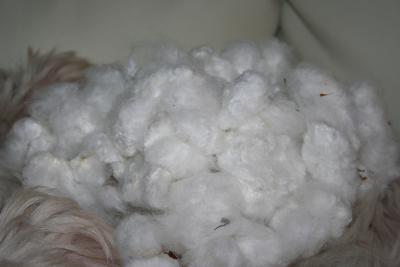 土曜日に、洗ってからきちんとブラッシングせず服を着せてしまったため、ふぁんちゃん毛玉だらけハサミを縦に入れて櫛で梳いて毛玉を取るんだけど、これがふぁんちゃん大嫌い・・・。そこで、これが登場無駄な毛がたくさん取れるのだ。綿の木から採った綿と並べてみた。さて、どっちがふぁんちゃんの毛でしょう?