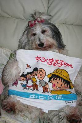 うちの地方は、圧倒的に中日新聞を読んでいる人が多いらしい。この新聞、連載漫画が【ちびまる子ちゃん】したがって、新聞屋さんから頂く粗品は、ちびまるこちゃんの物が多い。このタオル、ご近所中に洗濯ものとしてヒラヒラしてる~何でもお揃いが大好きな私だけど、それはお友達とお揃いが嬉しいのであって、誰とでも一緒が嬉しいわけじゃない。このタオルを干すとき、ちょっとだけ「はずかし・・・・」と思うのは私だけ?私が子どもの頃って、タオルってどこかのお店から貰って、お店の名前が入ってるような物ばかりだったような気がする。タオルが一日たくさん必要だった雄大がいない今、うちはタオルがたくさんあまっている。だから、まる子ちゃんのタオルは使わなくたっていいんだけどね、一回洗濯するとまた使ってしまうのよね撮影後、こーちゃんをのせるとこーちゃんをおろすと変化なし