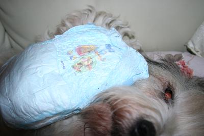 これ、雄大が使っていたオムツ。【ビッグより大きいサイズ】というサイズのオムツ。雄大がいた頃から、ウーちゃんは勝手に少しずつオシッコが出てしまうため、家の中ではオムツをしていた。わざわざ犬用の物を買わなくても、雄大とお尻の大きさが同じなので、雄大のオムツにしっぽ用の穴を開けるだけで使えたここ数年使っていたのに、どうしたことか、雄大が亡くなったとたん、お尻のしまりが良くなったのだ「ウーちゃん、お尻に緊張感持てるようになって、偉いねー」と褒めていたけど、やはりお歳には勝てなかったようで、ここ数日再びオシッコ漏れがひどいので、オムツ復活。でも、うちで一番オムツの似合うのは、しっぽの無いふぁんちゃんオムツして歩く後ろ姿は、本当に可愛い写真に撮りたいのに、動かなぁ~い・・・・こーちゃんがしているのは、しっぽの穴の開いた、お値段の高い犬用のオムツ。だけど、これ、しっぽの穴からウン●が普通に出てくるのだ・・・・。オムツしている意味な~しこーちゃんは、いつもは人間の新生児用のオムツをオチン●ンのまわりに巻いて、その上からマナーベルトをして、オシッコ用として使ってるよ~。「ウン●は?」って?ウン●は、出たら拾うのです
