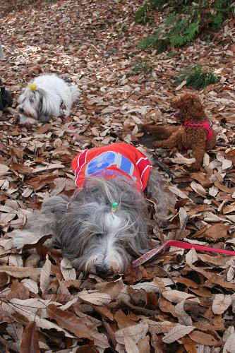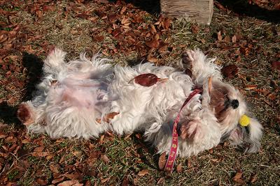 今日はウーちゃんも連れて公園へ。この場所は、一段低くなっていて、あまり人が通らない。人目が無いってことは・・・【遠ざかっていくバージョン】おなかの上に置くものが無いから、今日も枯葉。私はどんどんバック~♪どんどんどんどん下がりすぎて、開いてるかどうかわからないよねちゃ~んと開いてるのよ~ん