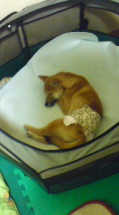 こーちゃんは、夜はウーちゃん・シロちゃんと一緒にリビングで寝てもらうことに。ウーちゃんの下敷きになるといけないので、この円形サークルに入って。ご飯も上手に食べられる私の膝の上で、この顔でいびきかいて爆睡どんぐり君、お口開けすぎ~。そんなにお口開いて寝てると、何か入れられる家なのよ、ここは