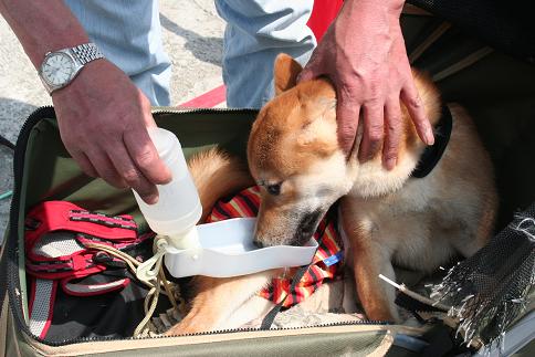 今日は、どんちゃんのお里の皆さんのされている譲渡会に出かけてきた説明すると、どんちゃんのお母さんとお父さんは、とある場所に置き去りにされ、その後ボランティアの皆さんに保護されたのだ。保護されてから、お母さんが妊娠していることがわかり・・・。ボランティアさんのお宅で、三匹出産。そのうちの一匹が、どんちゃん(どんぐり)だったというわけ。だから、どんちゃんは、道端に捨てられていたこーちゃんとは違って、辛い思いは何一つしていないお坊ちゃまくんなのである譲渡会の会場では、どんちゃんのことを皆さん知っていて声をかけてくださり チチ、行きも帰りも「今日は~どんどんが主役~♪」ってどんちゃんのことを知っている皆さんのところに行けたことが嬉しいチチ。よかったねぇ~チチ。 ・・・って、喜ぶのはどんちゃんでしょ~に 今日はどんちゃんが主役だから、カートはどんちゃん一人乗り~♪ 譲渡会のワンちゃんたち。仔犬さんコーナー。皆さんお昼寝中(笑) ちょっと見たことのない柄のこの子。まだ若いらしい。大きくてカッコイイこーちゃんにはナイショだけどぉ・・・、私もチチも基本的に大きな子が好き。この子、とってもとっても好みだけど、うちはもうワンは終了。カッコイイこの子に、良い飼い主さんが早く見つかりますように!! 譲渡会のお知らせは こちら で