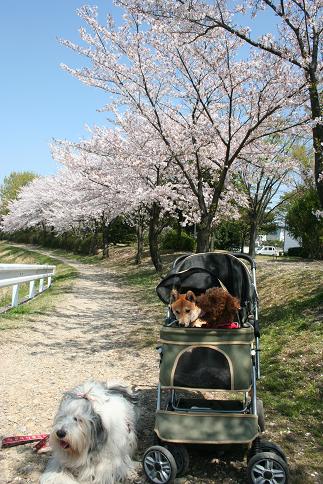週末は大混雑になりそうだから、今日お花見散歩に行ってきたカートは定員オーバーのため、ウーちゃんはお留守番・・・。 こーちゃん、ベロがベロ~ン ふぁんちゃんの上に、桜がヒラヒラ~ ここで、最近、愛犬を亡くされたご夫婦とお話した。悲しみが深くてお辛そう。「大丈夫ですって。私なんて息子亡くしましたから」って言いたいのをぐっとこらえ一人息子を亡くすって、やっぱりすごいこと。すごいことすぎて、話すとひかれてしまいそうで世の中ぺットを亡くしたあと、なかなか立ち直れず苦しまれる方も多いようだけど、おかげさまで私はその点大丈夫そうである。あの火葬場の出来事を思い出したら、この世であれ以上の悲しみ辛さはあり得ないから・・・。だから、これから何があったって【屁でもないわい!】である。