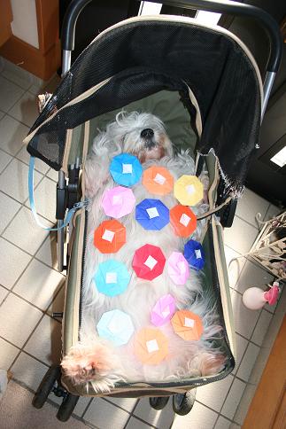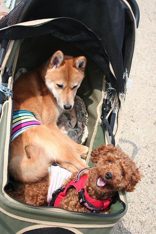 急に暑くなってしまって・・・・こんなに暑いと、長時間のお散歩もできない。カートの中は、結構な暑さになってしまうため。この前のお花見散歩の後、どんちゃんの食欲がなくなってしまったため、チチから「無理のない散歩を!」とお達しが今日はシロちゃんを火葬してもらったあたりまで、ドライブ。それがお散歩のかわり シロちゃん、天国で無事にゆうくんに会えましたか? 在りし日のシロちゃん&雄大。耐える耳のシロちゃん。 何に耐えているかというと・・・ シロちゃん、天国でも、しっぽ引っ張られていますか?