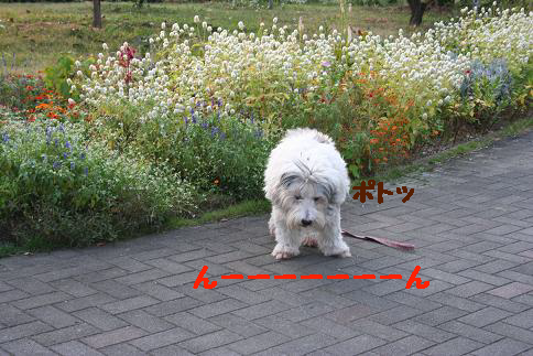 毎夜のワン鳴きでヘトヘトの飼い主・・・。朝四時半起きのお弁当作りも続いており、二度寝したいんだけどさせてくれないのよ、ふぁんちゃんが・・・。 「オカーサン、二階にいるのはわかってるのよ!早く降りてきて~!」って・・・。そんなワン疲れな日々でも、休日はワンのために少しでもお出かけしてやりたいと思うアホ飼い主。行った先はごく近所。花ボラ花壇でお花を撮っていたら、このお方、横で・・・・脱糞こちらは、静かに散歩を楽しむどんちゃんと、キャンキャン言いっぱなしのこーちゃん。お次は、いつもの公園へ。いつもの公園でも、行くのはとっても久しぶり。疲れてヨレヨレな時に限って、いろんな人に会ってしまうのは何故?DくんAくんのママが、いつの間にか三匹目のSちゃんのママになっていたぁ~ゴールデンのSちゃん、人懐っこくて可愛いことどんちゃんの動きを見て「何?何?この子」って感じ。初めて見るショウガイジでびっくりしたよね(笑)いつもの散歩道じゃない場所へ、車でお出かけするのは、本当に楽しいよね~、あんたたち。来週も行きたいよね~。行きたけりゃ、夜は静かに寝るべし