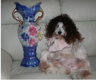昨日、チチサンタ、セレブな知人からこんな物を貰って帰ってきた。セレブな知人の奥様がと値段も聞かずに衝動買いしたものの、気に入らなくて邪魔になったに違いない。 私、キラキラしてるし、お花付いてるし、嫌いじゃないのよ。でもね・・・・・大きすぎ!!! こーちゃんソファにのせたら、バランス崩れて転倒ふぁんちゃん、カツラずれて下敷きに さて、これ、いったいどこに置くべきか???そして何に使うべきか???チチは玄関に置いて「傘立てに」って言うけど、これ、バランス悪いからすぐに倒れてしまいそう。実際に花瓶として水を入れて使うのもねぇ、花瓶自体に大きな派手なお花がついてるから変だし、なんたって、このサイズだから合うお花が無いよ!やっぱりセレブなお宅に置く、置物だろうなぁ。 うちに置くとしたら下駄箱の横かな・・・。ワンコスリッパラックに、激安店で一足数十円で買ったスリッパこんなビンボーさんのおうちに、このド派手花瓶は見事に浮きまくり~でも、ビンボーさんは、いらない物でも捨てられな~い。とりあえず、スリッパラックの場所に置いて~ こうして遊んでみる。 アハハ~遊んだから、これ、もういらない
