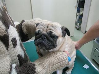 「チッチ、今週末はお注射チックンに行くよ」「かあたん、お注射チックンってなあに?」「チッチはね、お散歩のたびに、他の子のシッコのニオイ嗅いだり、ときにはぺろっとしちゃったりするでしょ?ホントは悪いばい菌があったりするから、よくないんだよ、だからさ、チッチが悪い病気に罹ったりしないように、予防注射ってのがあるんだよ」「ヨボウチュウシャってどんなの?サプリみたいに美味しい?」「あ・・・いや~(~_~;)美味しくはないけど、お散歩がてらちょっとよるだけだからさ。」「とおたんも一緒?」「え?そ、そうね、とうたんにブブで連れてってもらうから、3人で行くんだよ」「こわくない?」「怖くない怖くない、みんな『チッチちゃん待ってたよ~』って言ってくれるよ」ボクはかあたんにまたもやダマされた。かあたん、痛いなんて言ってなかった。怖いなんて言ってなかった。ボクはまた、あのツーンとするニオイのお家に連れてかれて、へんてこな水色のベベ着た「センセイ」って怖―いオジサンにイタイイタイされた。しかも、タイジュウがオオダイだって。オオダイっていけないの?かあたんが、青ざめてた。とおたんは「うちのがオヤツをやりすぎなんすよ」なんて、余計なことセンセイに言いつけてた。今だってオヤツが足りないと思ってるのにさ、とおたんったら!カアタンはお医者のゴハンがいけない、ってモンク言ってる。ボク困っちゃったよ。オシリから変なガラスの棒を入れられた、「38.3ヘーネツですね」だって。ヘーネツって何かな?かあたんがここぞとばかりに、ボクのお目メを見ろとか、腹を見ろとかセンセエに言ってる。とおたんもさ、ひどいんだ。ボクがいてもたってもいられなくて、固まってるのにさ、笑いながらデジカメで僕のこと写すんだ。んで、「ちょっとタイジュウが気になりますが、オオムネ健康ですね。」だって。かあたんとセンセエのオシャベリが長くて、ボクタイクツしてきた。ウアーってアクビまででちゃってさ、早くお外で遊びたいなあ・・・なんて思ってたら!!「!」センセエ、ボクのウシロからなにか刺した!ボク、ビックリしたなんてもんじゃないよ。でも、ボクすかさず飛びのいたから、センセエってば、ビックリしてたな、ふふふ。でもね、痛かったよ~。お散歩の時も、ときどき木の枝とかがパキってなって、ボクビックリするんだけど、そんなもんじゃなかった!チックンじゃなかったよ!ブスリ!だった!とおたん、いい動画が録れた。なんて言ってたけど。ひどいやひどいや。ボク、当分、かあたんも、とうたんも、センセエも許してあげないんだ!帰ってから、わざとリビングにおしっこひっかけてやったよ!それくらいボクが怒ったってことさ。でもね、帰るとき、ボクの大先輩に会ったよ。16才だって言ってた。16歳になるまでビヨキなんて全くなかったって。ボクがプリプリしてたら、おじいちゃんがね「若いの・・・怒っちゃいけないよ、毎年チックンしてるから、ワシもこの歳まで元気で来られた。かあたん達を恨んじゃいけないよ。」そう言うんだ。ホントかな?チックンすると、おじいちゃんになるまでずっと、かあたん、とおたんと一緒にいられるのかな?ボクはまだよくわからないんだけどさ、やっぱり、とおたんとかあたんのこと許してあげようかなってちょっぴり思ったんだ。裏チッチに注射シーンをアップしました!うなぎカメラマンの自信作!見てね!!