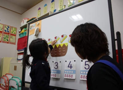今日は娘の通っている幼児教室の、今年度の修了式でした。年43回の授業のうち、個人面談が2回、授業参観が3回くらいありましたが、あとは子供たちだけの授業(=母子分離)でした。今日は最後ということもあって、普段は絶対禁止のカメラ、ビデオOKの日でした。親の私が言うのもなんですが、この1年で急に伸びた感じがします。週1回、1時間の授業で本当に身につくのかな、と最初は半信半疑だったけれど、プロの先生に教わると、やはり違う!今、ひらがな大好きっ子です。電車に乗ると、読めるものをひたすらブツブツ言っています。そして、そこから派生してか?ことわざを一生懸命覚えています。さるもきからおちるかえるのこはかえるねこにこばん・・・そして・・・親のわたし的にもこの1年はとても楽しく過ごせました。昨年度のクラスは、これから細く長くお付き合いできそうな友達も出来たけれど、最後はもう何というか・・・泥沼化して、私、不眠症になりましたから。それに比べ、今年度はそんな悩みは一切なく、本当にママ同士が楽しく過ごせた。感謝感謝です。来年度も水曜で通いたかったけれど、水曜が開講されなくなり、結局金曜に通うことにしました。園バスのお迎え時間だと間に合わないので、金曜だけは幼稚園に迎えに行き、即幼児教室へ行く、といった感じになります。今日はた~くさん写真を撮ることができたので、この1年間の授業風景を焼いてくれるCDもあと2週間くらいで届くので、それと併せてアルバムに残してあげようと思います。昨年度は一度も休まず通いましたが、今年度は2回、休んでしまいました。(うち1回は幼稚園の入園説明会だったから、仕方ないです)来年度、また皆勤で通えるように頑張ろうね!