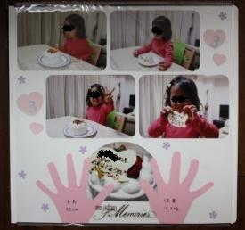 先月末に3歳を迎えた娘ですが、“SBは家事の一部”としてほぼ定着したためか娘の2歳アルバム、ほぼ完成に近づいています。で、1ページ目と最後をどうしようか・・・と悩みました。今でなら、3歳のスタートにふさわしい?ページが作れる自信があるけれど、2歳にはもう戻れないから。 結局、この1年間で携帯で撮った写真を現像し、それらをベタ貼りすることに。最後の見開きページ。ラストページはお気に入りの写真を6切サイズで貼っています。1ページ目。携帯画像は、1枚に写真2枚の現像で。以前、1枚に画像1枚で現像してみたら、携帯の画素が低いためか、見にくい写真だったので。2歳アルバム、なんと42枚(84ページ)アルバム、パンパンです。実は、2ページ、空いてしまったので、そこをどうしようか考え中なのです。昨日は、5ヶ月の男の子ママの体験レッスンでした。写真をたくさん持ってきてくださったこともあり、トータル1時間半強で2ページ作られました。体験レッスンが始まる前、娘が“このおもちゃは、赤ちゃんの口に入ったら危ないから持っていかない”“赤ちゃんが泣いたら○○ちゃん(娘)なでなでしてあげる”このようなことをずーっと話していました。そして体験レッスン中、赤ちゃんが泣くと、しまじろうのぬいぐるみを持って赤ちゃんの頭をなでなでしてくれました。最近になって急にこのようなことが出来るようになりました。あれほど見ていたDVDも、今じゃほぼ見なくなったし。この1ヶ月くらいで、変わったなぁ、と思います。