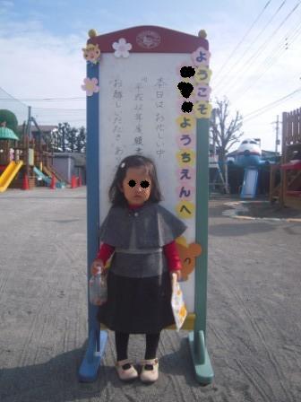 いよいよ始まりました、プレ1回目。“おともだち と いっしょ”と言っていた娘も、いざ幼稚園の前に来ると泣き出しそうな顔に。私も、どんな親子と一緒のクラスなのか、ドキドキでした。1回目ということもあって、手遊び、ご挨拶あそび、読み聞かせ、体を動かしたり・・・とごくごく、普通の内容だったかと思います。園長先生に、通園バッグを手渡ししていただき、娘はニコニコ。あっという間の1時間でした。先生に名前を呼ばれて“は~い”とお返事できたし、椅子に座っている時はきちんと座っていられたし・・・親としても一安心でした。プレが終わったら、“おそとであそぶ~”としばし園庭で遊んでいた娘。泣きそうだった顔が嘘のように、にっこり笑って遊んでいました。来年3月まで、毎月3回、幼稚園プレ&幼児教室のダブルヘッダーな日があります。大変だけれど、頑張ります!(幼児教室も昨年3月以降、無遅刻無欠席継続中)