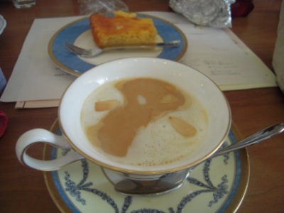 昨日(20日)、2ヶ月振りに紅茶のレッスンを受けてきました。今回はホットティーと、そのバリエーション。実は、私はにおいのきつい香辛料(ミント、シナモン・・・)が大の苦手。だから?、ガムも殆ど噛んだことがないくらい(噛めない)。そんな私なので、実習はロイヤルミルクティーを選択。友達はオレンジ+カルダモン で作っていました。美味しかった~で、今日早速家でも作ってみました。夫“美味しいじゃん”と3杯も飲んでくれました。昨日のレッスンでは、フルーツティー(今回はバナナ、りんご)を作りたて、5分後、30分後、1時間後で飲み比べもしました。時間がたつにつれ、美味しさ度合いがです。娘も興味津々で、私の膝に座り、試飲しまくり。もともとおとなしい性格ですが、今回は本当におとなしかった~。次回は、まだまだ先になりますが、アイスティー。楽しみです。