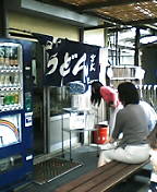 K氏が突然、意味不明な言葉を発した。これで終わりとでも思ったのかい?だって、神のうどんを食べちゃったんだよ。これ以上、何を食べろというのだ!それに、全員満腹 胃の中に物理的な空間がないのである。 これ以上、食えるハズがないのであった!それでも、車は走り続ける。そして、あるうどん屋の前で停車した。 あちゃ~! 私は思わず頭をかかえてしまった。お店の名前は長田in香の香K氏によると釜揚げのうまい店だという。私の脳裏にいやな予感が浮かんだ。釜揚げのうまい店? 長田?讃岐うどんに詳しい方ならわかると思うが、長田という店は釜揚げで有名なのである。ただし、この店とは違う。満濃町というところに、満濃トライアングルと呼ばれている3軒のうどん屋があるその一つが長田なのだが、はっきり言って、あんまりおいしくない。満濃トライアングルは金比羅さんの近くという事もあって、観光客が多い。その観光客のおかげかどうか? 正直言って最近の長田は行こうとは思わないお店なのだ。聞くと、どうやらこの店も満濃の長田の関連らしいのだ。期待度が思いっ切り下がってしまった。それに、もともと私は釜揚げをあんまりうまいと思った事がないのである。讃岐うどんは冷たいのに限ると思っている。最後に、こんな店を紹介するとは、K氏も老いたか?まぁ、愚痴ってもしょうがない、勝負を挑まれたらそれに応えるのが讃岐うどん行脚の宿命なのだ。店内に入る。案の定、お客は釜揚げばっかり食っている。しかたないので、私も釜揚げを注文する事にする。さて、ここで、ワンポイントレッスンしておこう。釜揚げとは、麺をゆでたゆで汁と麺がそのまま器に入ってでてくるのである。ところが、それに似た食べ方に「湯だめ」というのがある。こちらも、器に湯と麺が入っている。しかし、これらは全然別の物なのだ。釜揚げというのは、生の麺を湯がき、湯がきあがるとゆで汁ごと器に入れる。それに対して、湯だめというのは一度湯がいて、水で締めておいた麺をもう一度湯で温めなおして器に入れるのだ。湯だめは一度水でしめているので、麺がシャキッとしている。それにゆで汁はあまりにごっていない。それに対して、釜揚げは水でしめていないので、やわらかいのである。麺の表面も小麦粉が残っているようにぬるぬるしているのである。まとめると、釜揚げは、やわらかくて、ぬるぬるしている。注文してから出来上がるのに時間がかかる。湯だめはコシがしっかりしていて、しゃきしゃきしている。作り置きが効くので、注文したら直ぐに食べられる。大雑把にいうとこんな感じだが、讃岐以外の場所では、湯だめを釜揚げと称して売っている店も多い。そのうち天罰を与えてやろうかとも思うが、本物の讃岐うどんを知らない不幸な人たちだ。今回は見逃してやろう!さて、いよいよ釜揚げうどんが運ばれてきた。おお、見事な物だ。麺のゆで汁から麺の香りがぷんぷんする。ゆで汁のにごり具合はこれが本物の釜揚げだと物語っている。さっそく、ダシにつけて、食べてみる。うんめぇ~! なんというか、食える。これなら食える。今まで、5軒もうどん屋を巡ってきて、正直満腹でもう食えないと思っていた。ところが、ここのやわらかい麺が頑なな胃袋をやさしく包み込んでくれるのである。しかも、もちもち 濃いめのダシも絶品だ。思わず、最後の一滴までダシ汁を飲み干してしまった。私は、初めて、うまい釜揚げを食べたのだ。釜揚げってこんなにもうまかったのだ。ああ、感動! 聞いた話によると、この店では真夏でも来店客の70%は釜揚げを注文するそうである。恐るべし、長田in香の香!まさか、ワールドカップが始まる前に感動するとは思わなかった。釜揚げが好きになりそうな、今日この頃であった。 さて、長かった讃岐うどん行脚もいよいよ終わりに近づいてきた。現地ガイドのK氏と、今回同行してくれたにせエルビスさんともお別れだ。お二人さん、どうもありがとう。やっぱり地元の人たちが一緒にいてくれたからこんなに楽しい思いをさせていただきました。心からありがとう 二人に別れを告げた我々は帰路についた。さらばうどんの国よ。誰かが、言った。また来るぞ! 私も、無言でうなずいた。それにしても、まさか6軒も回るとは思わなかった。これだけうどんを食っても実質1500円ほどしかかかっていない。讃岐うどんは驚異的に安いのである。一時期、讃岐うどんブームとかで、全国に讃岐づどん店が竹の子のように生えていた。しかし、所詮は偽物。あっというまに淘汰されて、ほとんどが死滅している。やはり讃岐うどんは香川を離れて存在する事はできない。この快感を味わう為には香川へ行くしかないのである。今後もそうであろう。これをお読みの皆様、香川へ行きましょう。想像を絶する死ぬほどうまいうどんがあなたを待っています。 さて、帰路についた我々だったが、ある人がこういった。「小泉さん、○○サービスエリアで止ま