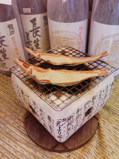 店頭ディスプレイです。ちなみに段ボール製。ししゃものおなかにはティッシュが仕込んである。(^。^/)どう? おいしそうに見える?それにしても、今の季節はお燗がおいしいなぁ。