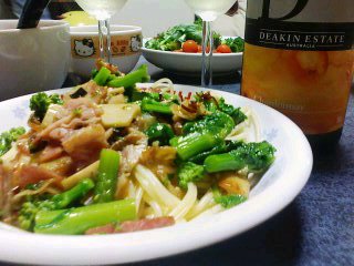 昨日のブログで、菜の花スパゲティを食べたいと書いたらなんと、昨夜は菜の花スパゲティでした。おおおおお、久しぶりじゃぁ・・・・これを食べると春だなぁと感じます。ベーコンの甘みと菜の花の苦みとニンニクの香り・・・・ああ、たまらん。最高です。マイ奥さん・・・・愛してるよ!(^з^)-☆Chu!!