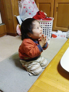 しんのすけ・・・・保育園に行くようになってからいろんな芸を覚えてきます。これも、その一つかどうかわかりませんが突然、こんな事はじめました。うーむ・・・短い足がかわいいぞ!(*^o^*)本人が何をお願いしているのかわかりませんけどね。(^_^;)