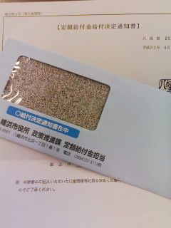 ついに、我が家にもやってきました。これ↓結局は払った税金が返ってくるようなもので今後の消費税アップを考えるとあんまり喜べないのであるが・・・・ とにかく、もらえるものはもらっておこう!ふはははははははは・・・・・・(^。^/)