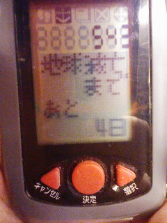 実は、まだしつこくやってます。宇宙戦艦ヤマト万歩計。 最近デスクワークが多くてなかなか歩かないのでヤマトもなかなか進みません。で、どうにかこうにかドメル艦隊を打ち破ってガミラス星までやってきました。んが・・・・ うーむ・・・・・・仮にガミラスを打ち破ったとしても・・・・・・ここまで(片道)86日かかっている。・・・・・・ 帰りの片道・・・・・3日で帰れるのか? なんか、激ヤバという気がしないではない。 さて、私は地球を救えるのでしょうか? 救えないと思う人、手をあげて!