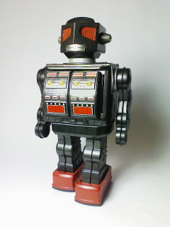 こんなもの買っちゃいました。知っている人は知っていると思うが1960年代のブリキのロボットなのである。最近、復刻版で再販されているらしいのですがこれはれっきとした当時の物です。 私は、子供の頃にめちゃめちゃ欲しかったのであるが当時、買ってもらう事はなかったのであった。それを、ついに手に入れてしまったのである。(^◇^;) 本当は歩いてしばらくたつと胸のカバーが開いて中からマシンガンが出てきて、数発打つのであるが残念ながら壊れて動きません。はたして治せるのか?
