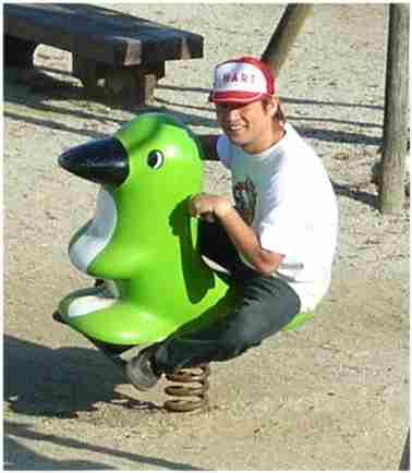 (画像は公園のアヒルにのって華麗なるライディングテクニックを披露しているジョニー。誰にも見られていないと思っていたら、妻に望遠レンズで撮影されていました。)