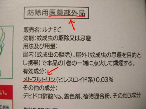 正確には蚊取り線香ではありません。医薬部外品でないからです。