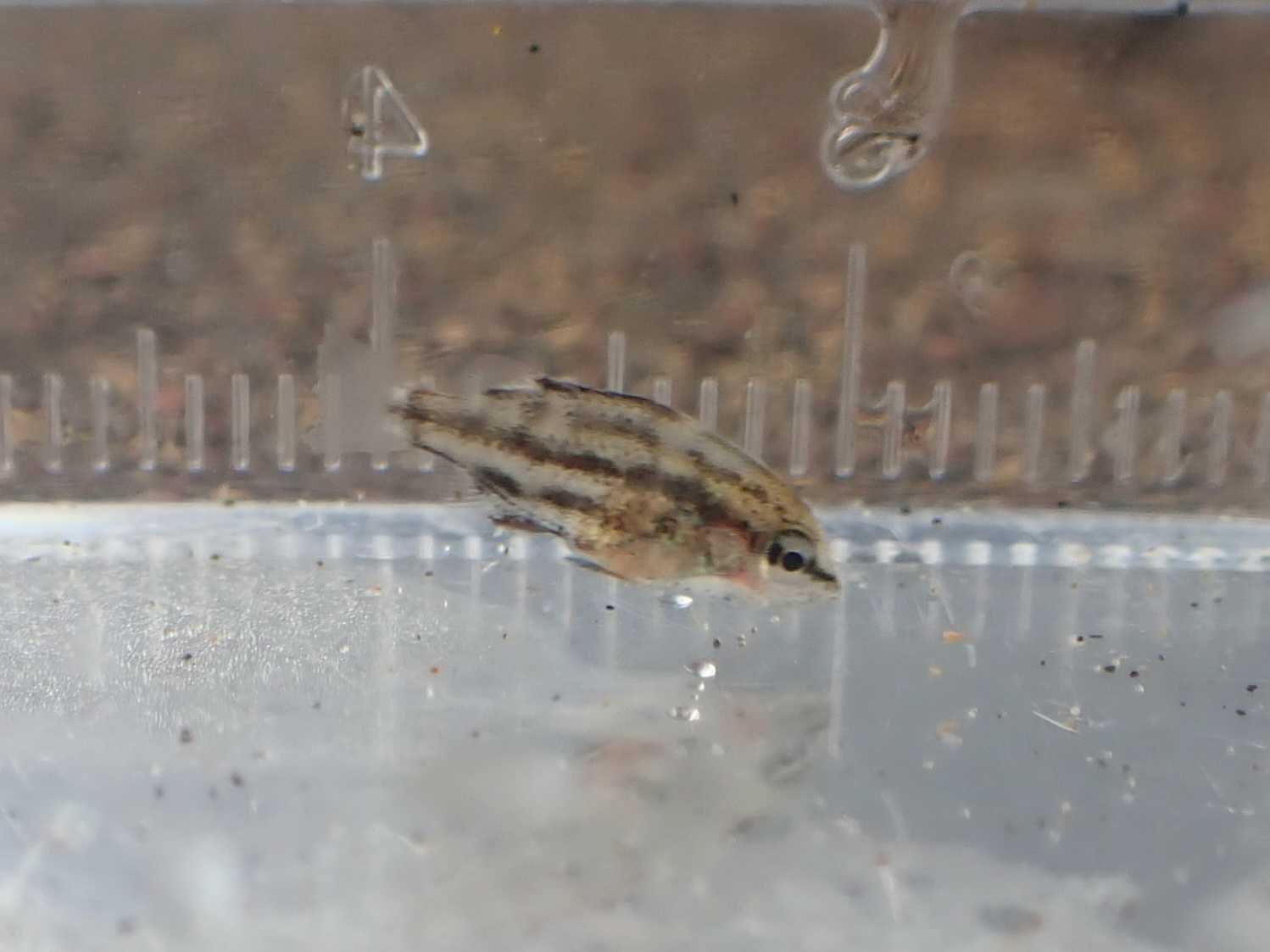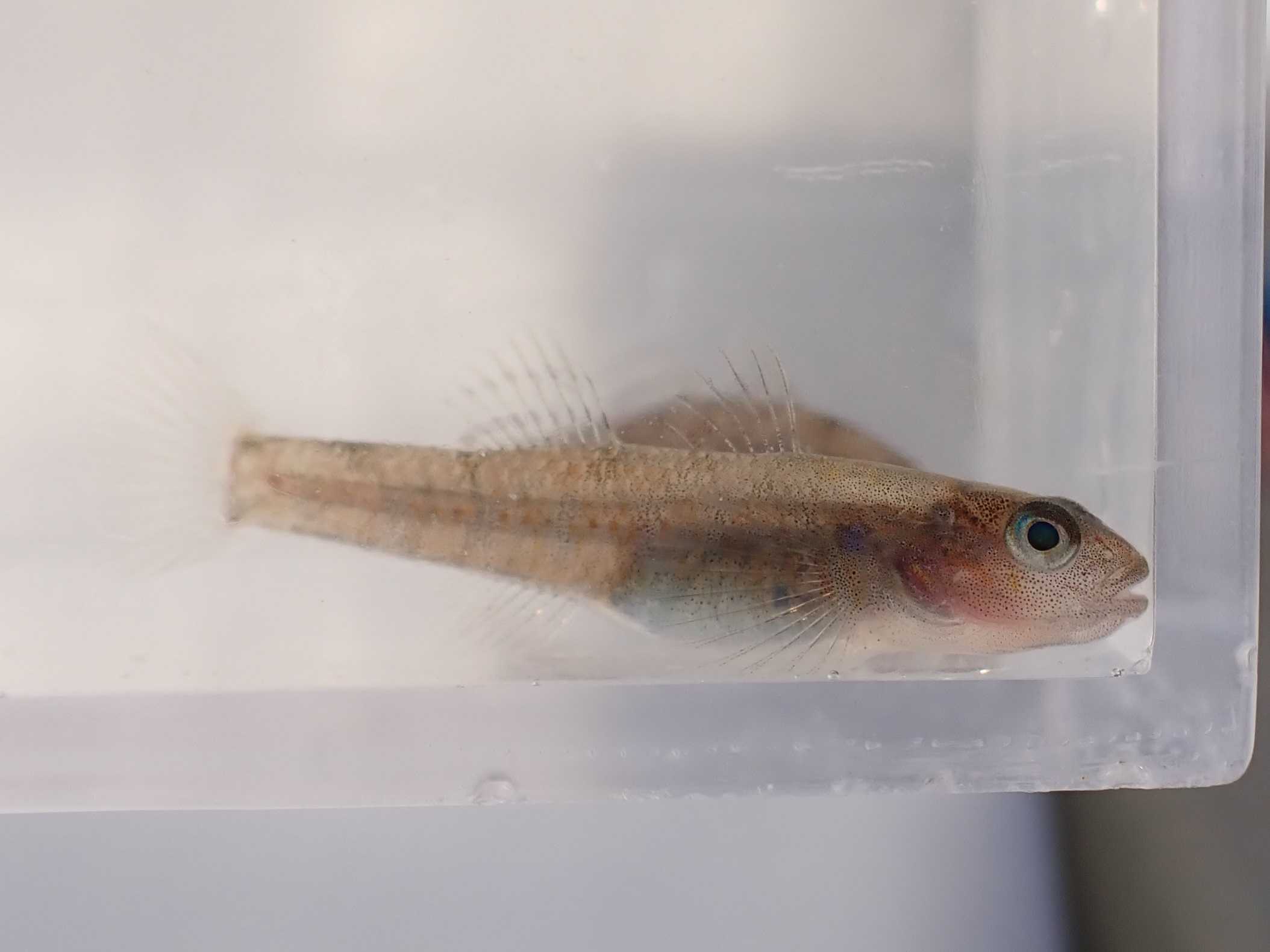 もちろん初採集のニューレコード。前々から採りたいと思っていた魚。幼魚以上の面影はないけどこれはこれで貴重なステージ。キープしたけど、摂餌すんのかなこいつ…。