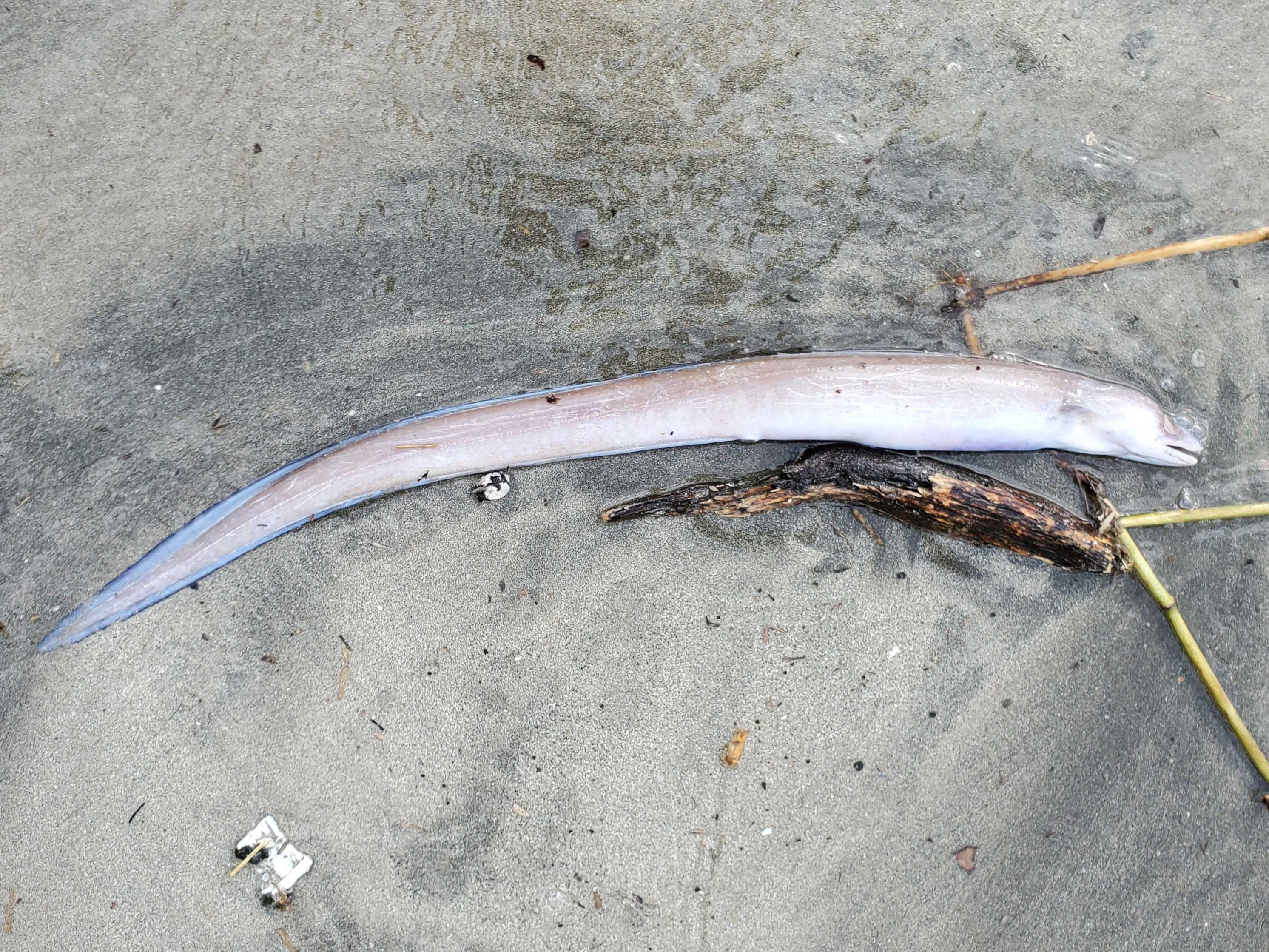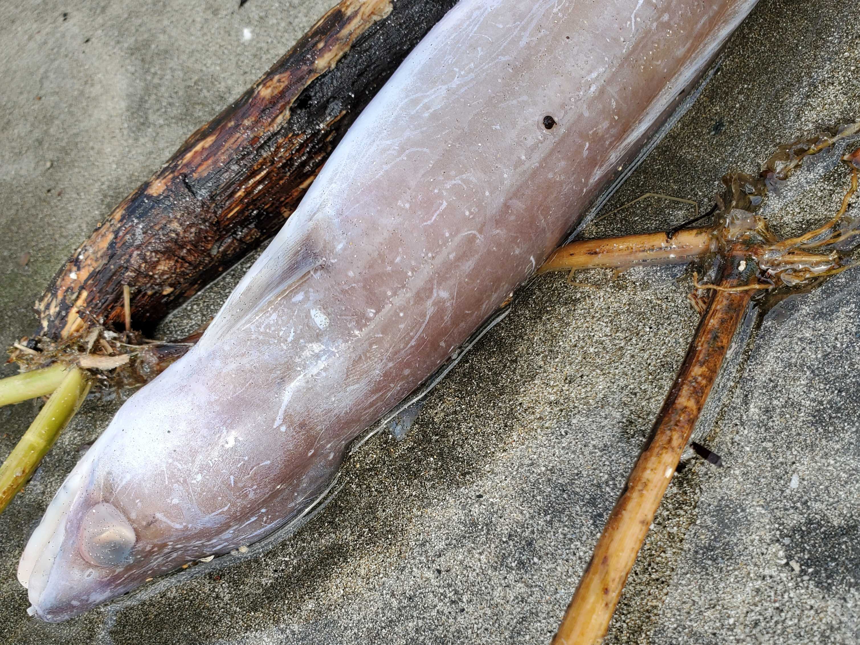投棄モノぽい。なんか死臭がすると思ったらこれが転がってた。背鰭の位置的にクロアナゴで合ってる…よね?