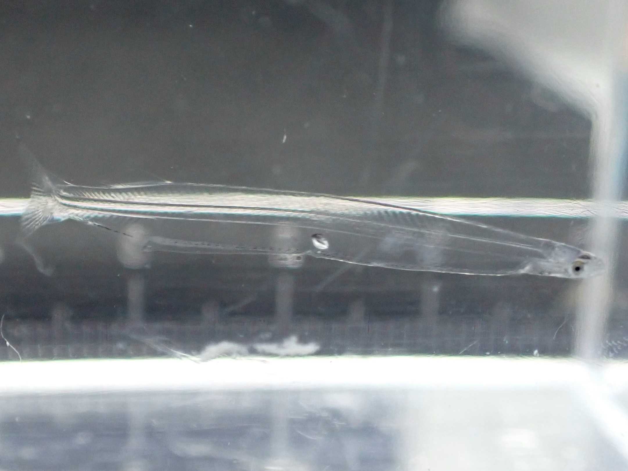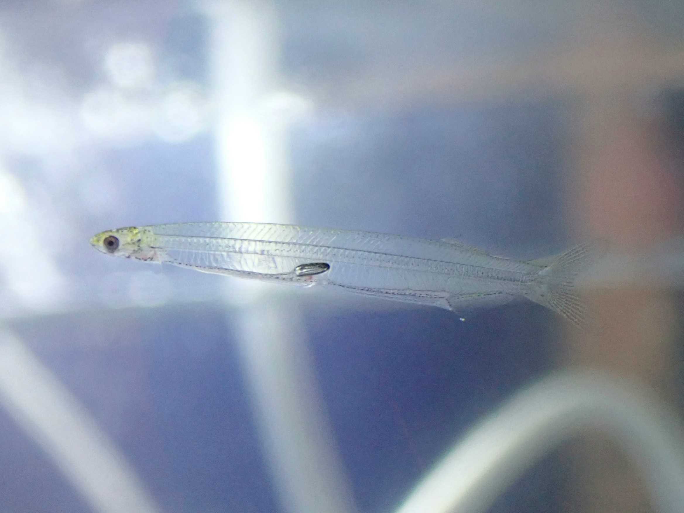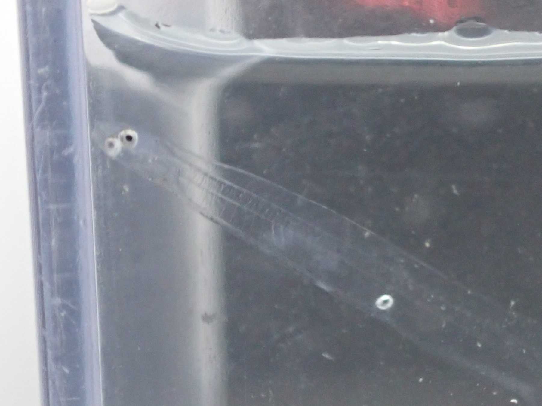 なんか細長くてにょろにょろした透明なのがいる、と掬ってみたらなんとレプトセファルス。しかしこの時期に河口でレプト…?と観察ケースに入れたら尻尾付き!これはウナギ目のレプトには見られずカライワシ目やソトイワシ目などに見られる形質。恐らく死滅回遊魚なので、前日の台風が少し影響したか。
