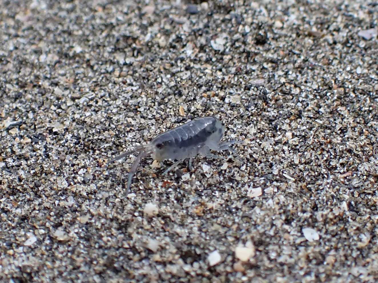 砂浜にポコポコあいている直径1、2mmほどの穴に住んでいるヨコエビの仲間。いつもは気にしていなかったがこの日は穴から出てきては砂の上を駆け回りぴょんぴょん跳ねていた。まじまじと観察したのは初めてかも。