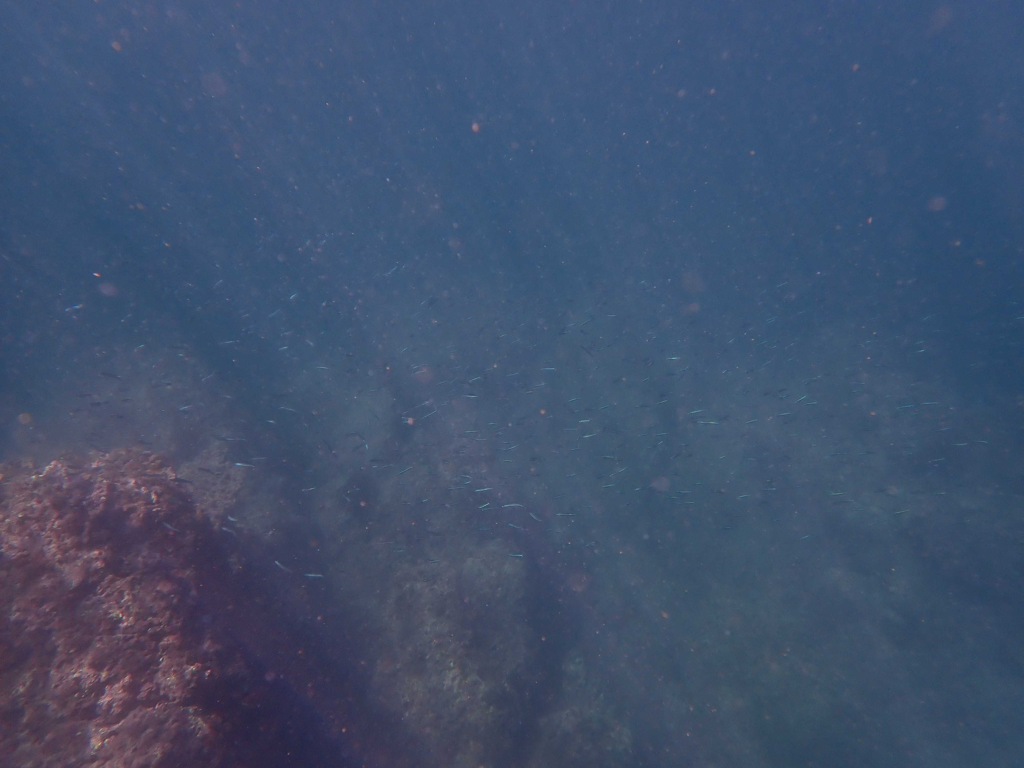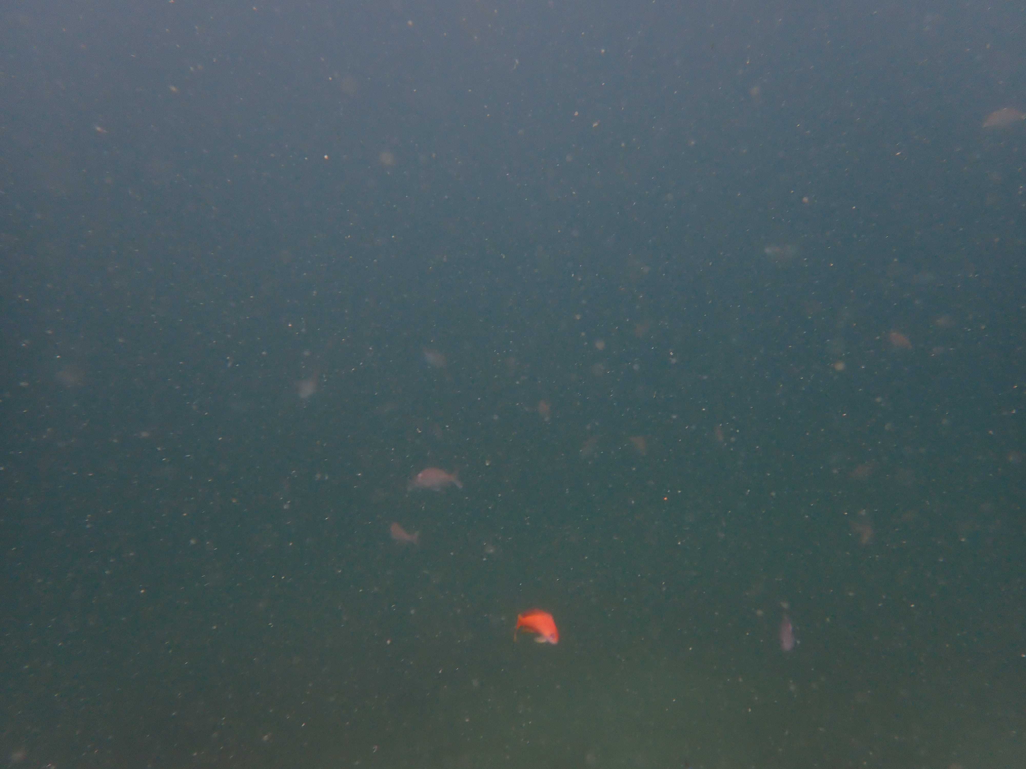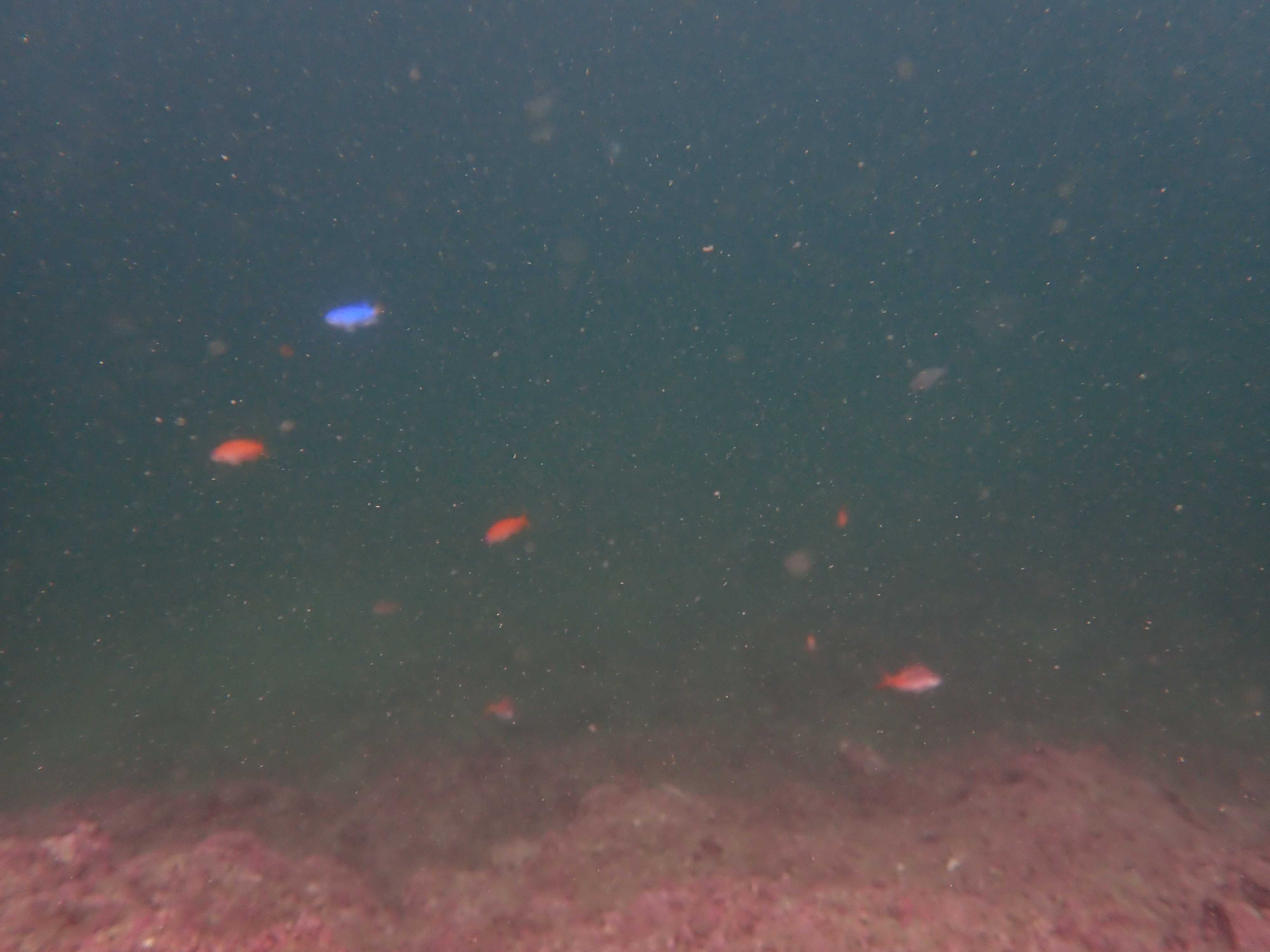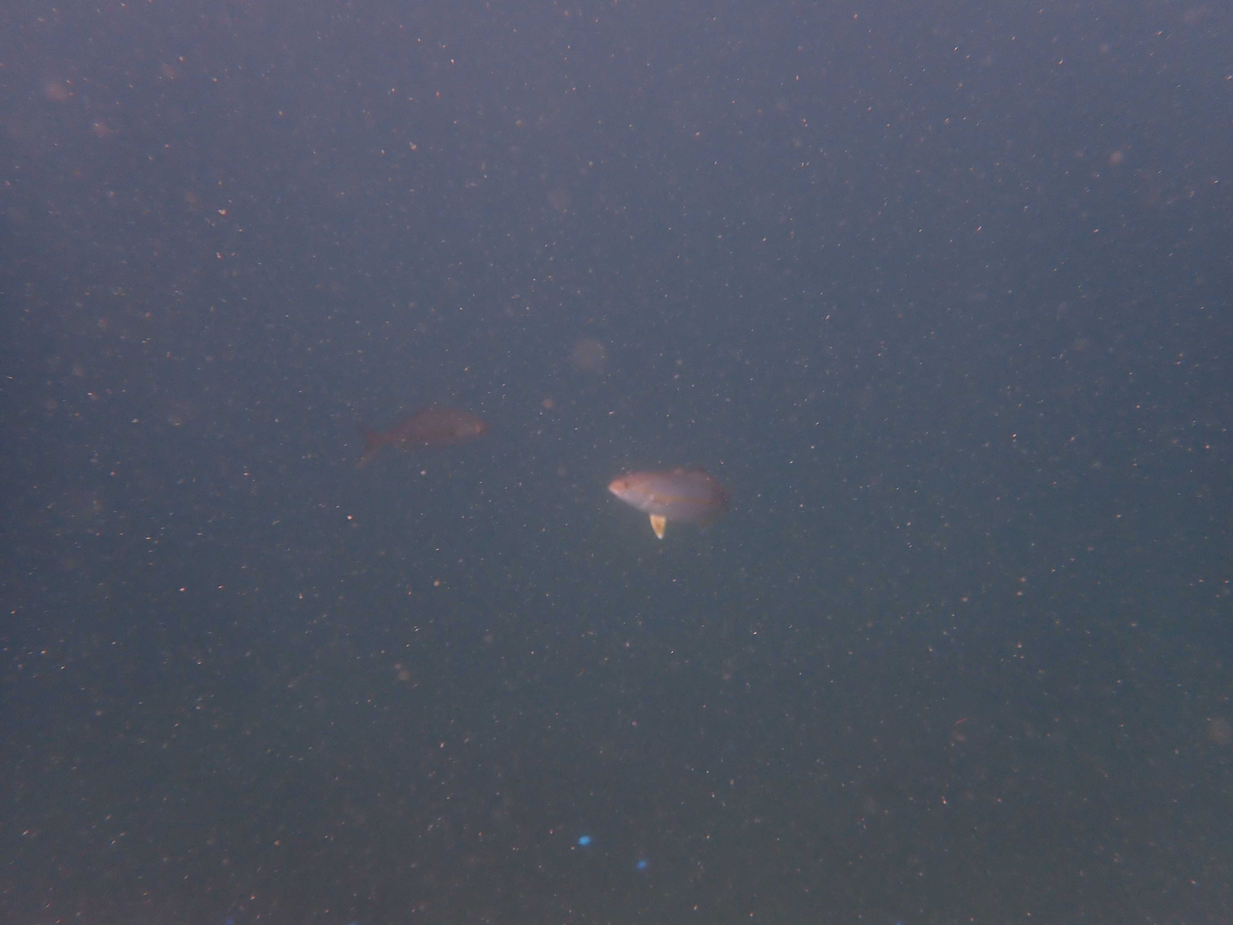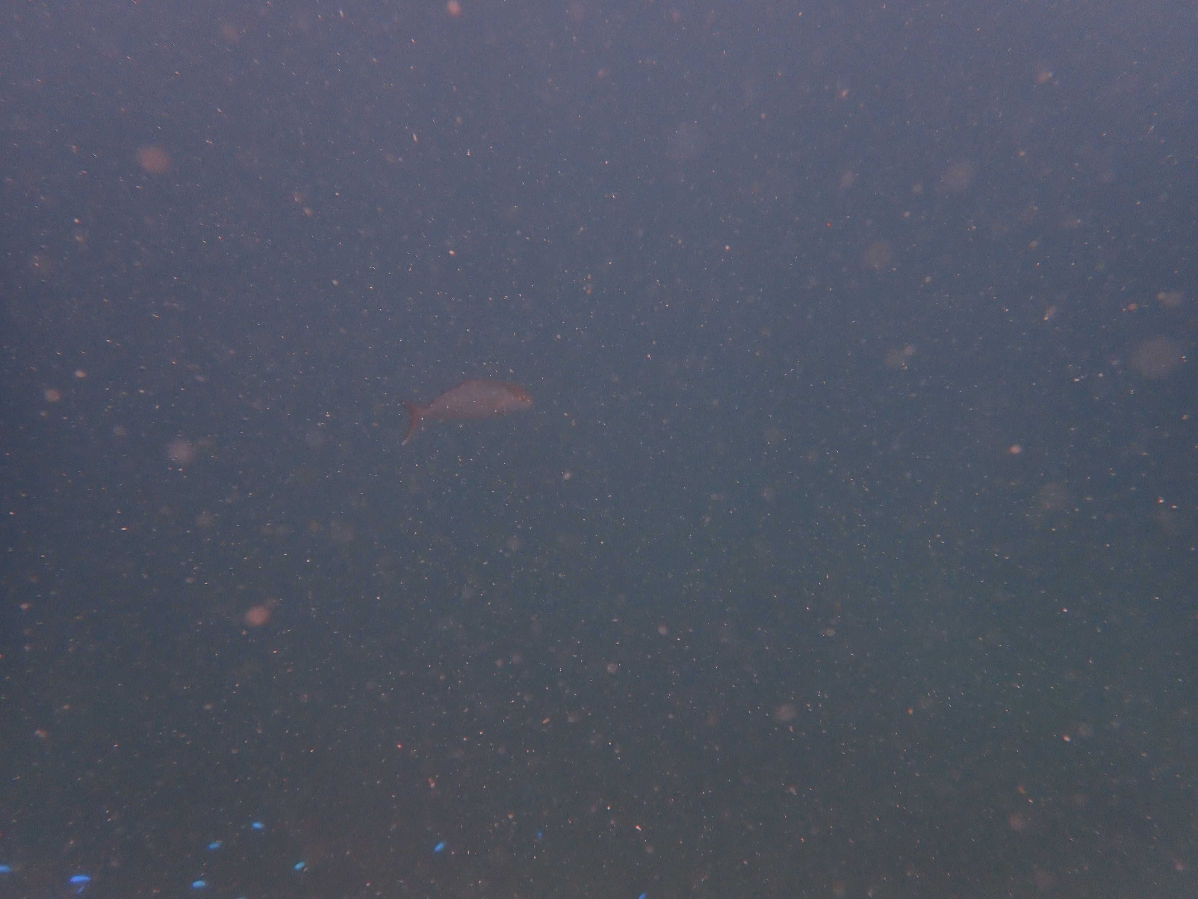 写真にははっきり写らなかったが、一瞬見えた感じマダイの群れのようだった。50匹以上はいたと思う。サイズは15~20cmくらいだけどマダイってこんな群れ作るものなの?実は泳いでてマダイに遭遇するのは相模湾では初だったりする。