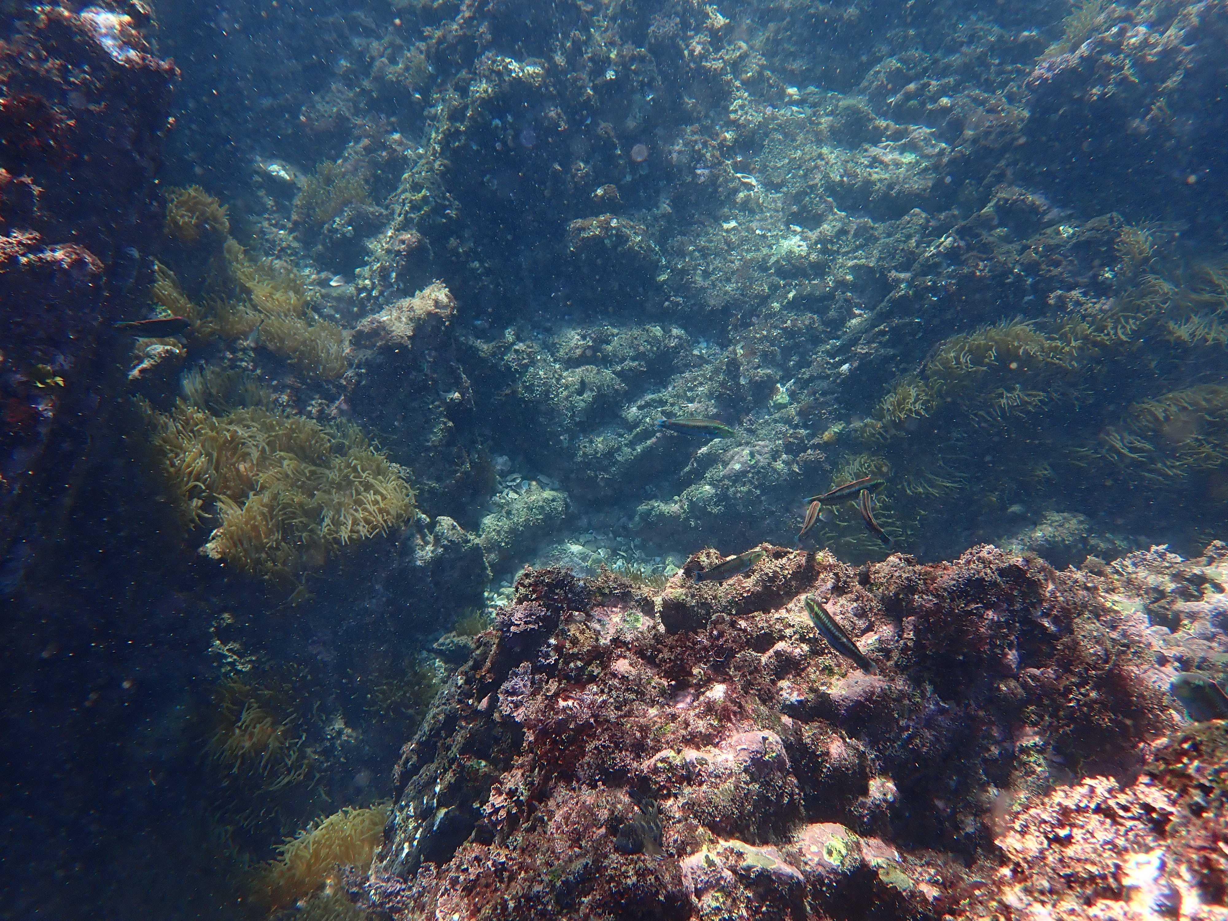 こっちは比較的浅く、波当たりはややあるものの透明度が高い。見慣れぬ通路を進んでいくと、こぢんまりした空間にぽっかりと箱庭のようなイソギンチャク畑を見つけた。