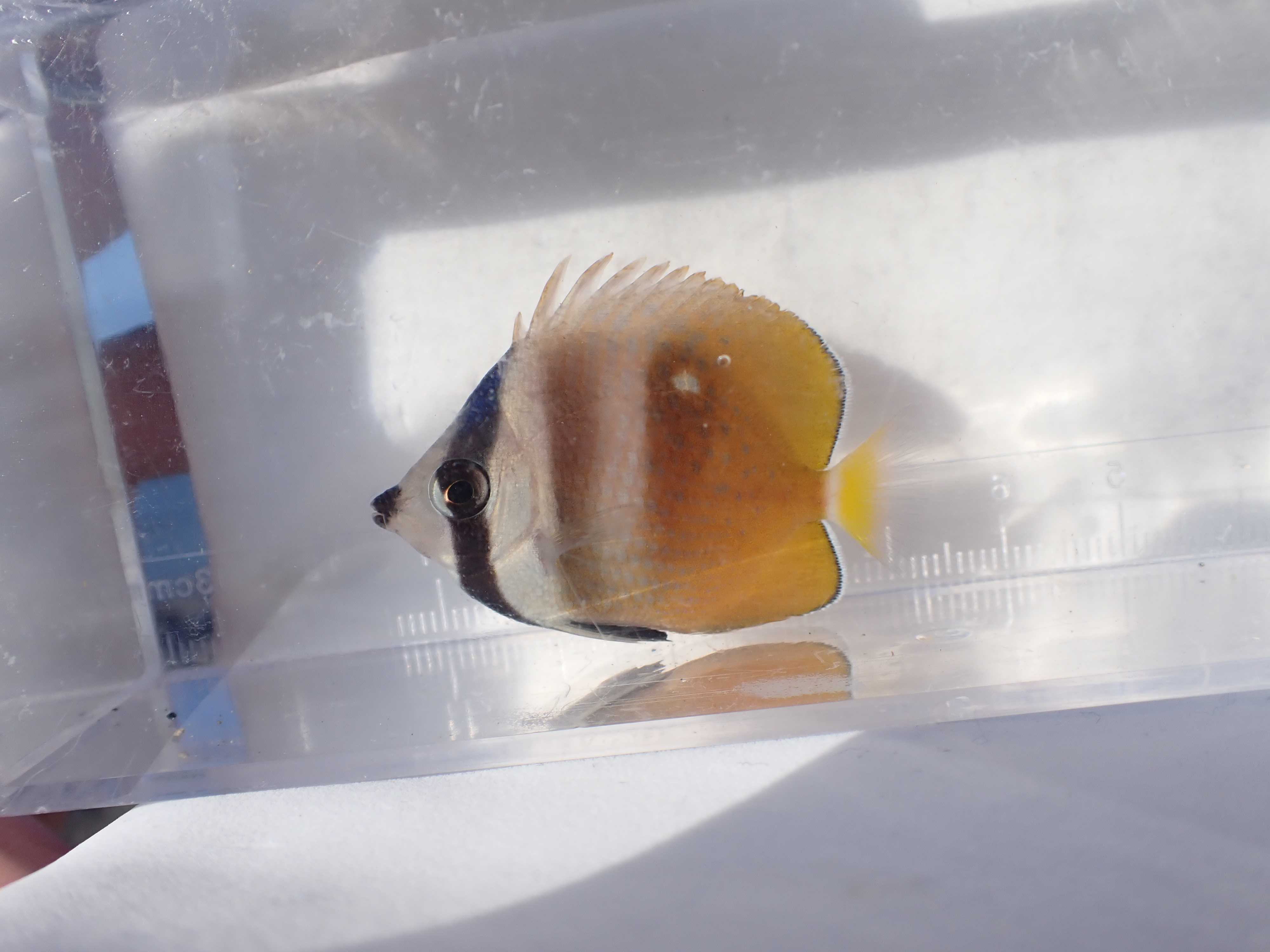 トゲチョウチョウウオ。やっぱりいい魚だなあ…他のチョウチョウウオに比べて背鰭が高い印象がある。幼魚はカッコいい系。今シーズン初採集。見てはいたけどやっぱり数は少なめ。