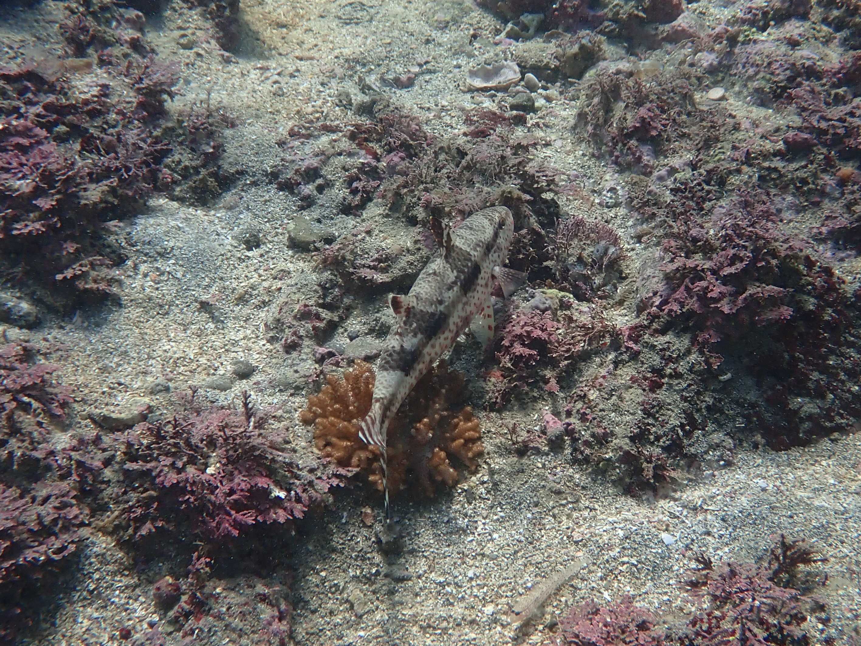 エントリー前に覗いたタイドプールにコトヒキに混じっていたシマイサキをM君が採集。ここで見るのは初めて。