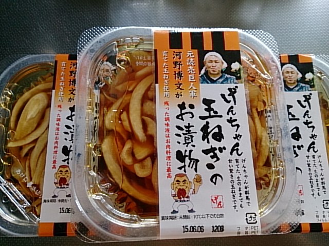 知人に頂いたげんちゃんのタマネギの漬けものが美味かったので探して購入さらにその元となるげんちゃんのたまねぎを見つけて買ってきました。たまねぎの漬け物は、とりせん大原店で1個189円 げんちゃんのたまねぎは道の駅太田で一袋300円で購入です。たまねぎのお漬物は、甘みが有りますが酒にもご飯にも合います。たまねぎそのものは、明日食べる予定です。↓3個買ってきました。毎日酒のつまみに1個づつ‥血液さらさら? ↓大きいたまねぎは2個で300円です。↓ 小さいたまねぎは5個入りで300円ちいと高いけど味次第やね