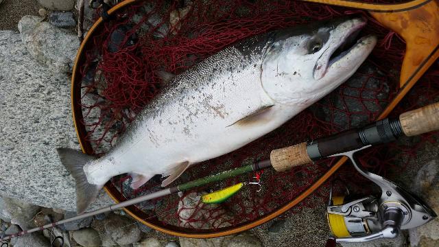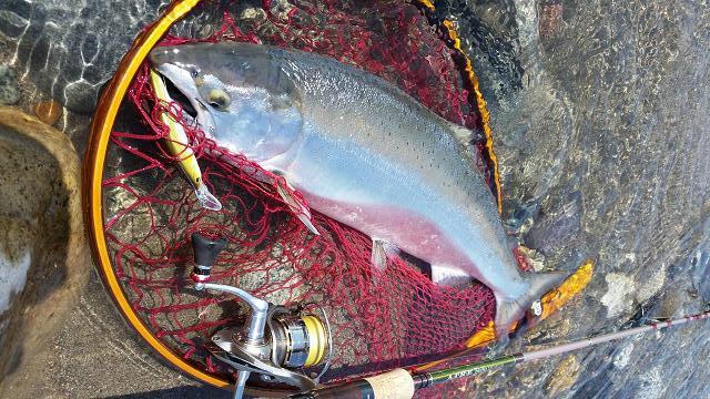 今年初のサクラマス便りが本日届きました。東北遠征中のU氏からです。何と本日2本、午前中1本、午後に1本だそうでまさにこの方の腕は漁師なみじゃないでしょうか解禁日、強風の赤川も昨年よりも良かった様で今年の東北は、幸先良さそうです。↓U氏ゲットの1本目59cm2.4kgの固体だそうです。 ↓U氏本日2本目のサクラマスです。いつみても綺麗な魚だね~