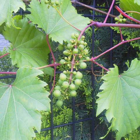 (時間が無いので、やっつけですw)我が家の西側に、勝手に生えたぶどうどうやら期待したマスカットなどの大粒では無くデラウエア? ってか 種無しぶどうみたく小さな粒の、ぶどうみたいです?(^^ゞ農家の人から… 実が出来るのは4年目からって聞いていたので、期待していなかったのでちゃんと間引きもしていないので、こんなにw今年の収穫は期待していないのですが…もしも熟れてきて、食べれましたらまたアップさせて頂きたく、思っておりまする(^^ゞ