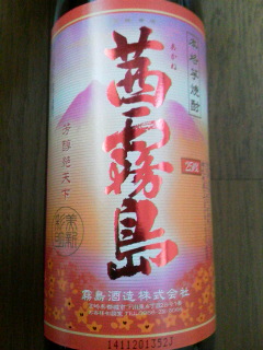 焼酎の霧島を出している霧島酒造から季節限定の焼酎…茜霧島が発売されました。知り合いの料理屋に頼まれましてあちこちの酒屋を回って買い占めました!お店で買えば五合瓶1本1280円が…キープになると4000円でショットなら5000円儲けになるそうですから料理屋も必死!原価で集めるのに協力してあげました。そのうち良い事も有ると思います(≧▽≦)