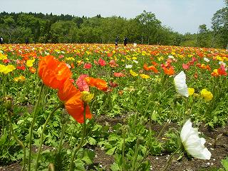 時期によっては花がないときもあるのですが、ポピーは今まっさかりで、白、オレンジ、黄色、ピンク、赤、一面に咲いていました。天気もよく、青空もとってもきれいで、写真も結構撮れました。