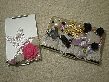 妹と一緒に、デコってみました。どっちが私の作品でしょう?左は、ミラー「妹作」右は、カードケース「私作」どちらかと言うと、私は妹の作品の方が好きかな(*´∇`*)若者に負けてはいられない!と頑張りすぎていっぱいデコりすぎてしまった感(笑)紫にレースに黒薔薇・・・・ゴス○○っぽい・・・。妹は、自分の作品にご満悦♪また一緒に作品作ろうね *********online shop *leisurely*新作入荷しています♪良かったら、覗いてみてくださいね^-^